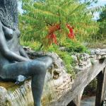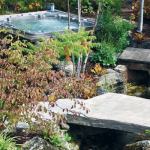 The waterfeatures alone are impressive: a natural-looking waterway sporting 14 waterfalls and three koi ponds, running from one end of the property to the other; a reflecting pool; a small fiberglass pool; and a spa. And all on just a half-acre.