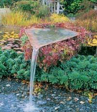 A designer's unique fountain highlights a showcase pond