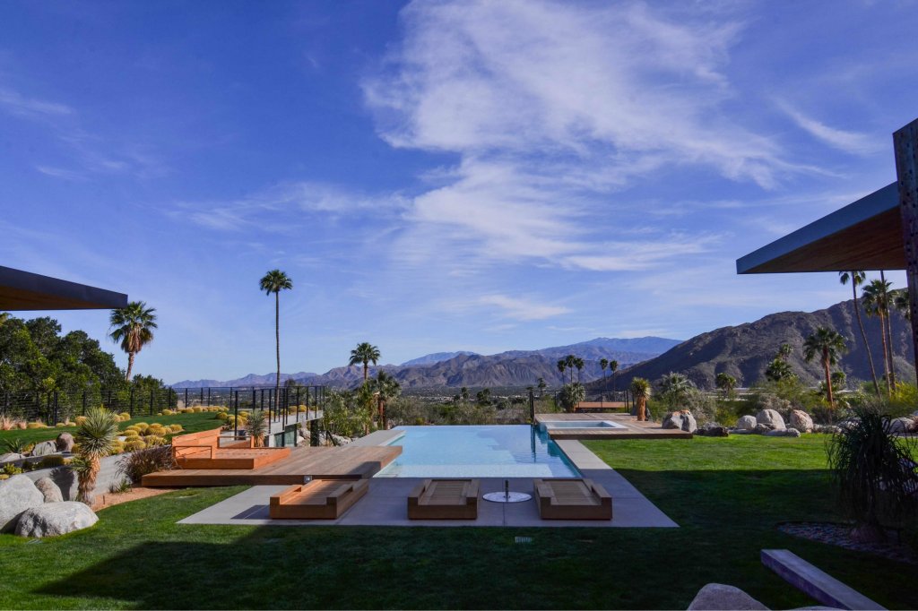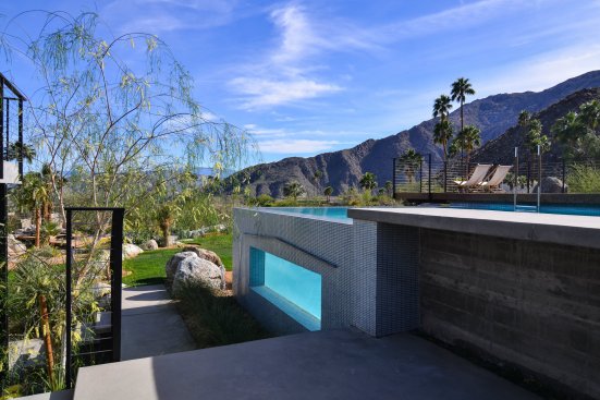 Clean lines and well-defined planes perfectly frame the Palm Springs landscape below