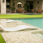 Simple appeal: The homeowner envisioned an elemental form adjoining his 16,000-square-foot home, itself linear and fairly unadorned. David Pavlesic placed the spa under the existing patio cover. The center points of both pool and spa line up with the kitchen. When discussing softscape, the client made clear he wanted a truly maintenance-free yard, with only a few potted plants and 7,000 square feet of artificial turf. But then came a twist that would seem easy to an outsider looking in: The turf had to meet up directly with the rectangular, perimeter-overflow vessel. Every other builder had said there was no way to bring the grass over the perimeter-overflow gutter. Pavlesic knew it had been done but, to his knowledge, only twice and only by one person — Brian Van Bower, president of Miami-based Aquatic Consultants and a co-founder of Genesis. Van Bower designed the hydraulic system and worked with manufacturer Bobe Water & Fire Features to design stainless steel edge plates that would accommodate synthetic turf over the gutters. To illuminate the waterscape, approximately 20 nichless LED lights were used to create a more soft, even glow throughout the pool and spa.