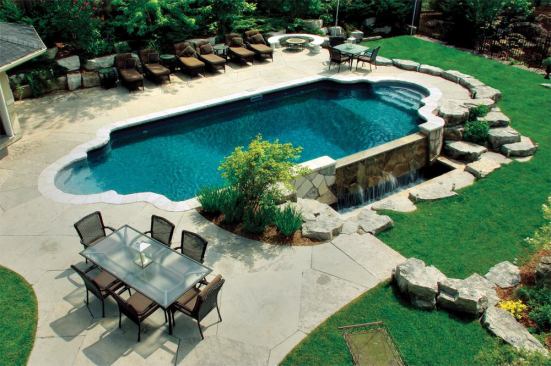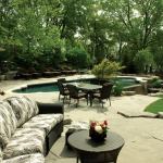 “I thought it would be on the backside of the pool, so it would be more of a vanishing edge to the horizon … but they wanted to be able to see the waterfall from their window,” Stuart Kirkley explains. “That grade difference is what makes the waterfall visible.”