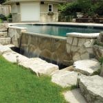 He was able to use standard steel panels to build the pool frame, but had to get creative in attaching the liner to the waterfeature. “The tricky part was attaching the liner at the water’s edge so it would be sealed,” Kirkley says.