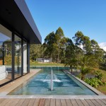 This lengthy T-shaped pool, positioned to interlock with the home, fit perfectly while embodying a space of calm and relaxation.