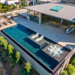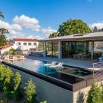 The 45-by-16-foot rectangular perimeter-overflow/vanishing-edge combination would be aligned with the great room so it could be appreciated from indoors through glass walls that could completely open up, turning that part of the home into an indoor/outdoor space. A sunshelf would sit toward the center of the pool, against the wall closest to the home, to afford the best view from the chaise longues.