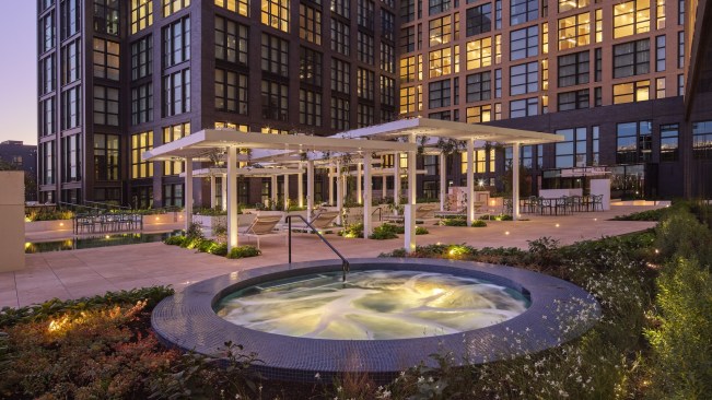 Then the team mapped out smaller destination spots to create a sense of intimacy even in the sprawling space and big city. They packed the area with features to boost livability: fire pits, dry seating, dining seating arrangements, multiple outdoor kitchens with grills, refrigerators, ice makers, and sinks.