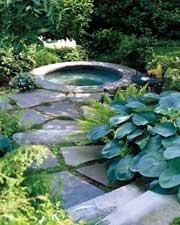This classic, round garden spa is as treasured as the complex, formal pool on the other side of the yard.