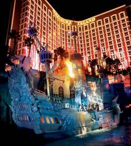 Pirates meet pyrotechnics in this free show in front of the Treasure Island Resort and Casino. During the 18-minute production, scantily clad sirens tempt rebel pirates with song, dance, swordplay and high dives into the lagoon. Warning: Adult themes may not be suitable for children. Location: 3300 S. Las Vegas Blvd.; www.treasureisland.com